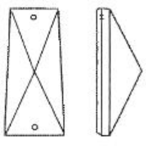 Glass crystal bar with 2 mounting holes. Length 2in(55mm) Width at one end 3/4in(24mm) and 1/2in(18mm) at the other end.