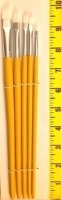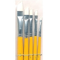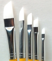 Angular white synthetic hair paint brush 5pc set, nickel seamless ferrules. package includes sizes: 1/4, 3/4, 3/8, 5/8, 1/2. The ferrule is the part that holds the handle and hairs together, and in shape.