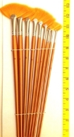 Golden Synthetic Hair Fan Style Paint Brush Set 9pcs, nickel seamless ferrules. set includes 9 brushes sizes: 0, 2, 4, 6, 8, 10, 12, 14, 16.