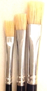 triple bristle hair paint brush package, flat style, size 6, 8, 10.