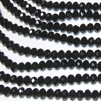 These are high quality crystal beads with 4mm diameter. The round faceted shaped black colored beads are light weight and thus excellent for handicraft, handmade jewelry, designing, beady necklaces, decorative and apparel. They are highly economical and hence ideal for projects that require bulks of beads.  These beads are on a 18" string with approximately 150 beads per string.