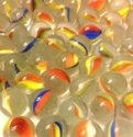 MN05 9/16" Clear Marble with red, green, yellow or blue swirls