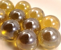 Dazzling, stunning and shiny light amber metallic marbles. • Perfect for all your arts & crafts and DIY projects. • 1” (25mm) size, use as a Shooter in those classic marble games. • Machine made in China.
