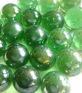 Dazzling, stunning and shiny green marbles. • Perfect for all your arts & crafts and DIY projects. • 5/8” (16mm) size, used as “mibs” or “ducks” in those classic marble games. • Machine made in China.