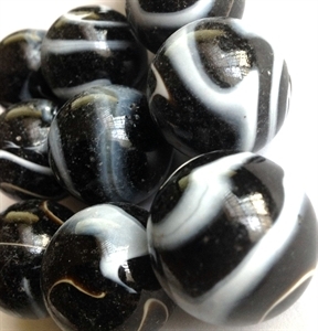 1" Black Opal With White Swirls Glass Marbles.