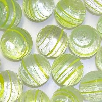 HANDMADE 1" or 25mm set of 10 Transparent Clear with Green & Yellow Stripes Marbles
