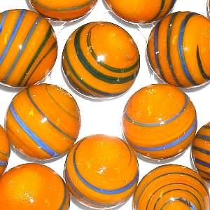 Orange is a lovely color and many people like it as their favorite, so if your favorite color is also orange then you would love these handmade 25mm orange colored marbles with dark blue stripes inside them. This set is of ten big sized marbles that you would not find on any other site online because they usually sell regular, small sized gems or marbles. Their excellent quality, unique design and economical price make them a perfect product for you to purchase. They are extremely affordable so you can even buy in bulk which would also give you the chance to not have to pay shipping charges.