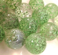 Dazzling, stunning and shiny clear base rolled in green crushed marbles. • Perfect for all your arts & crafts and DIY projects. • 5/8” (16mm) size, used as “mibs” or “ducks” in those classic marble games. • Machine made in China.