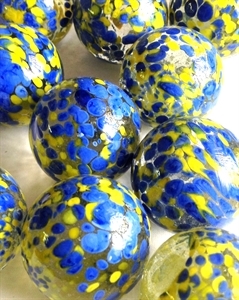 MI32192 HANDMADE 35MM Marbles Clear w/blue & yellow spots, 10pcs