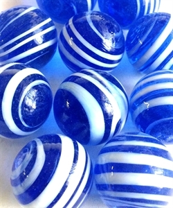 MJ3222AB HANDMADE 25MM Set of 10 Marbles, Transparent Blue w/White stripes