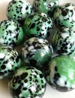 MJ3222E HANDMADE 25mm set of 10, Green w/black and white spots