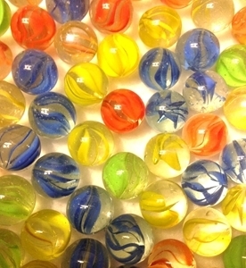 MN05 9/16" Clear Marble with red, green, yellow or blue swirls